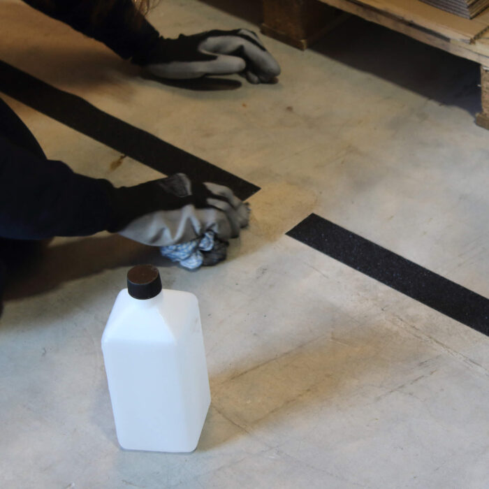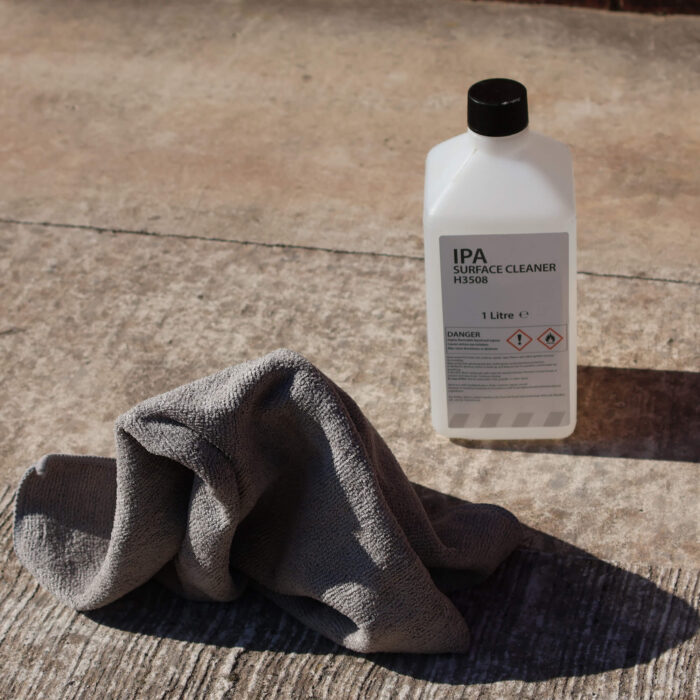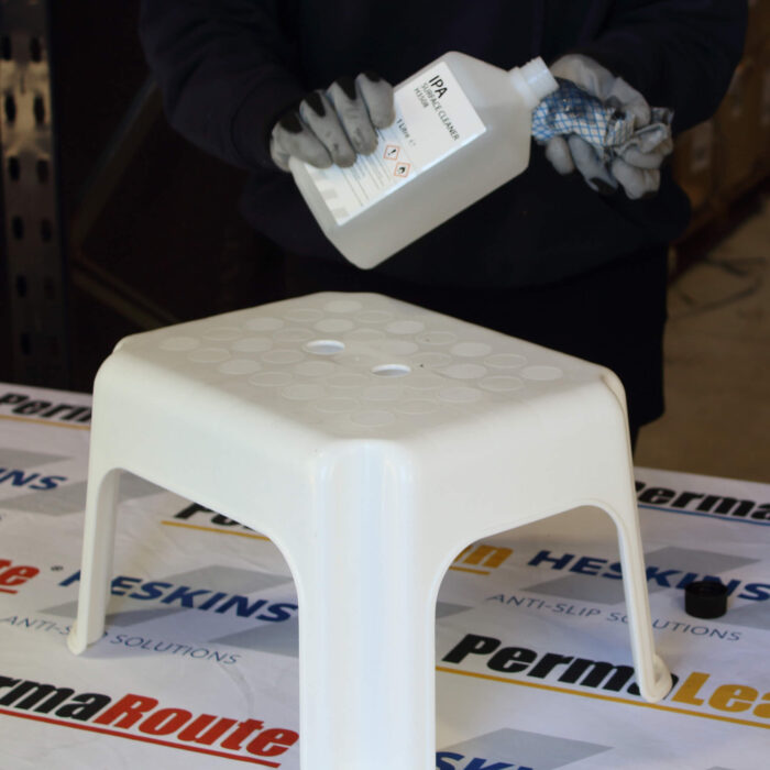 To effectively clean surfaces before our grip tape is applied we recommend Heskins H3508 IPA cleaner, it helps to remove contaminants, it does not leave behind a greasy residue unlike methylated spirits, petrol etc.